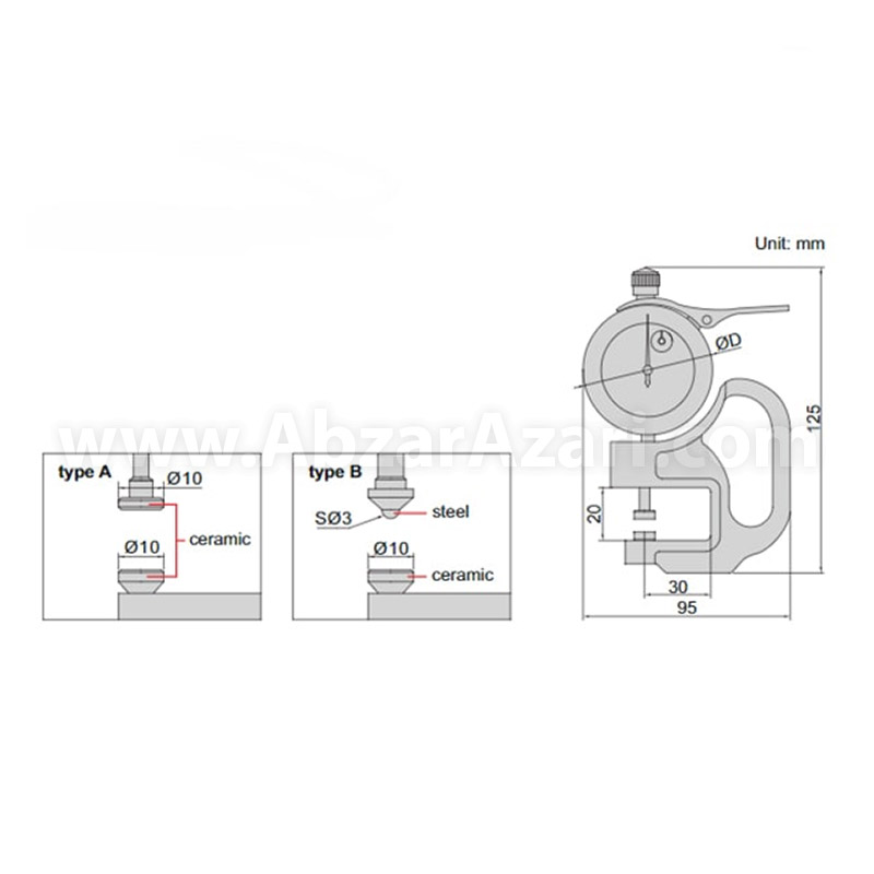 خانهابزار اندازه گیریضخامت سنج ضخامت سنج ساعتی اینسایز 2364-10 و 10-0 میلیمتر